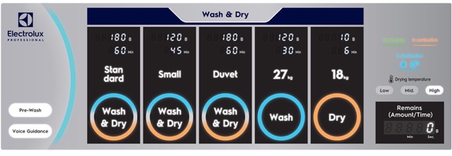 Line 6000 洗衣机烘干机现在允许您根据衣物类型将烘干温度调节为三个等级:高、中、低。